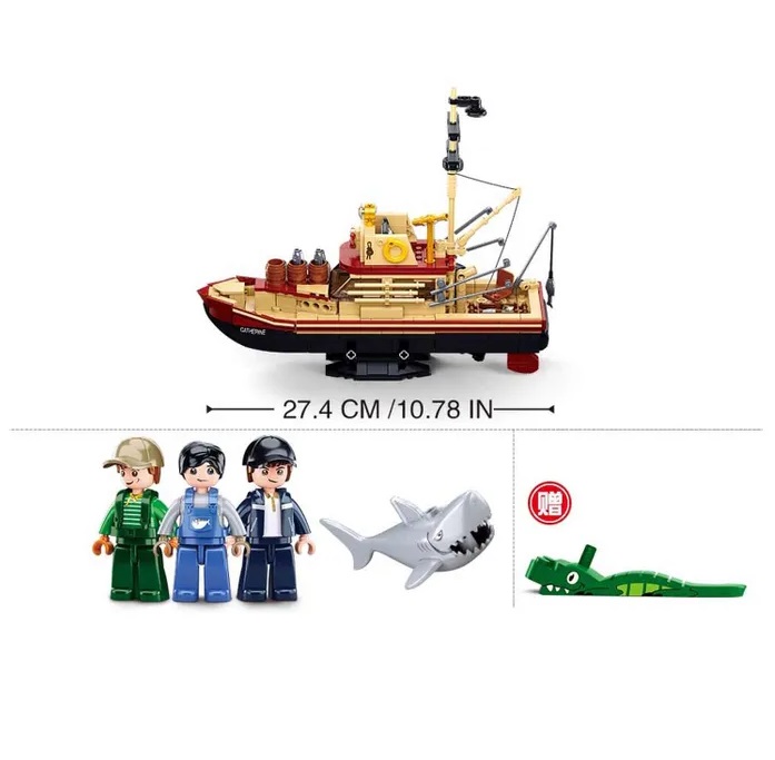 | | Конструктор SLUBAN Модельки M38-B1118 Рыболовное судно Catherine (592дет., 3фиг.+ 1 акула. 27,4см) | | |