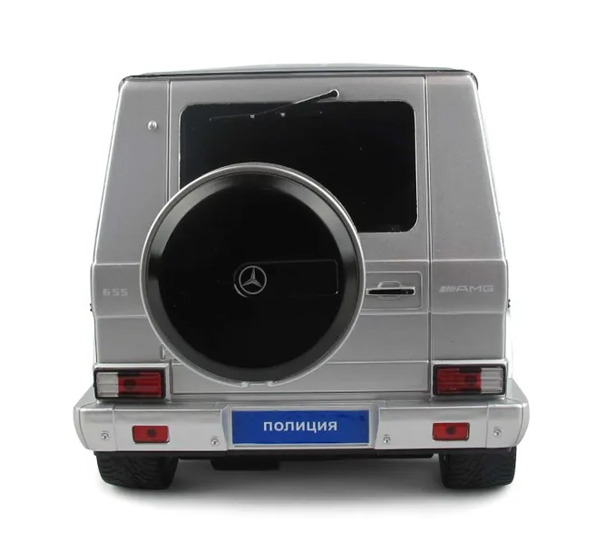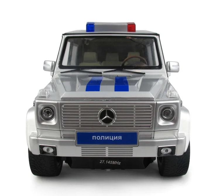 | | Машинка на радиоуправлении Rastar 30400P Mercedes G55 Полицейская (1:14, 32 см). Доступ в кабину. Свет фар. Серебристая | | |